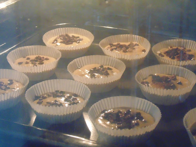 * Colocar em forminhas para muffins e cobrir com as pepitas de chocolate restantes;